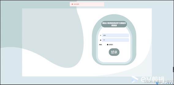 系统后台登录,管理员通过输入账号、密码,选择角色并点击登录进行系统登录操作,如图5-7所示。