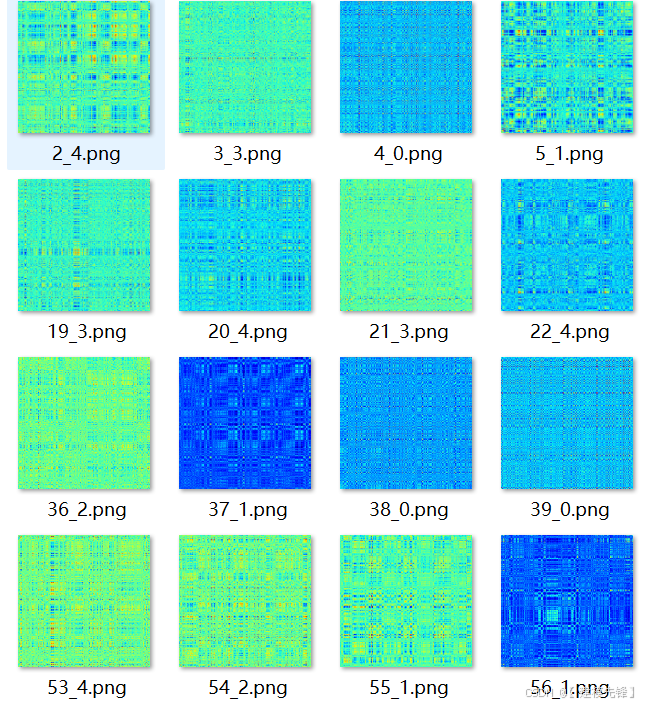 通过滑动窗口制作数据集,并按照7:2:1均匀划分训练集、验证集、测试集,最后保存数据。本文采用马尔可夫转换场 MTF来作为时频图像变换的处理方法,生成的时频图像如下所示:
