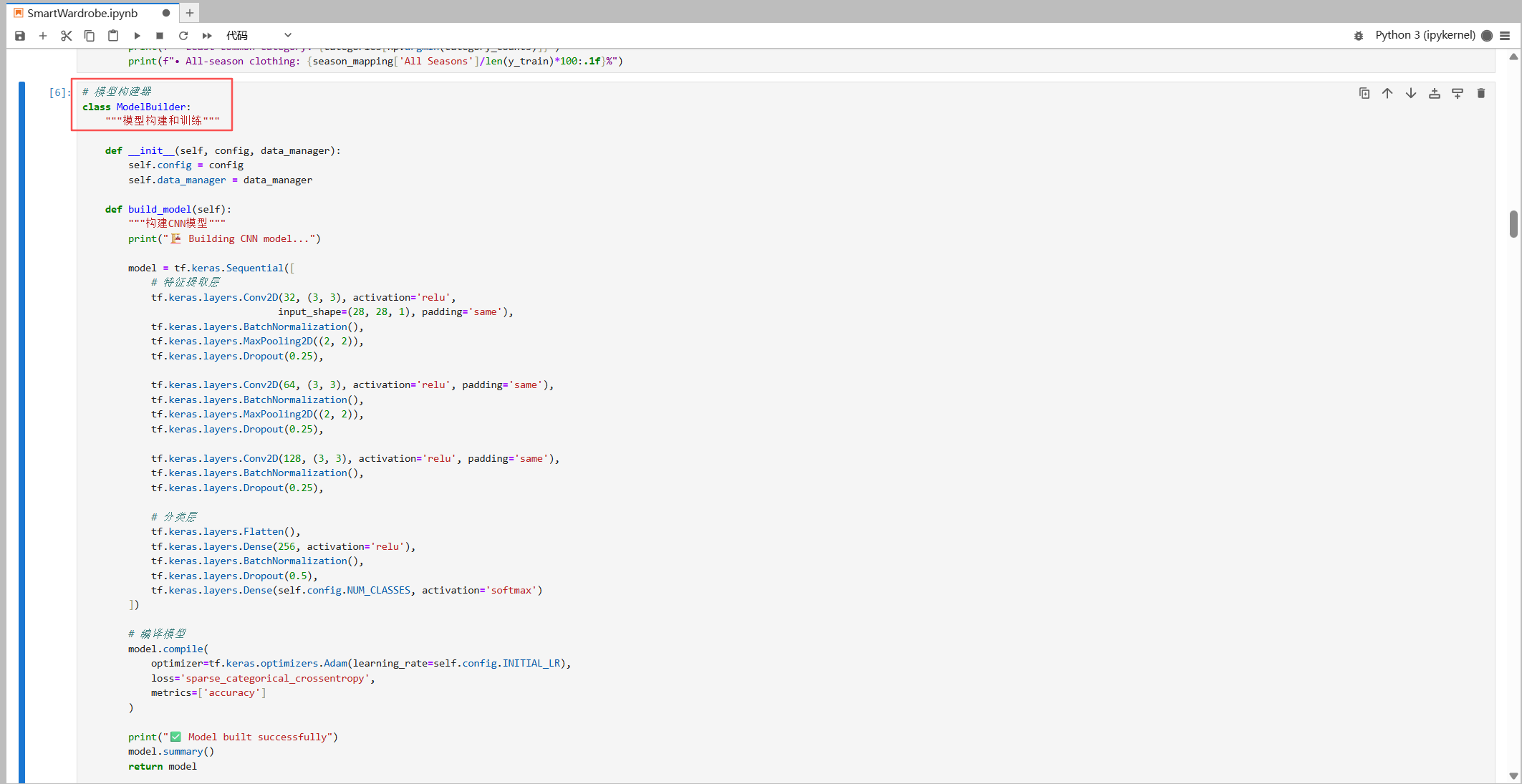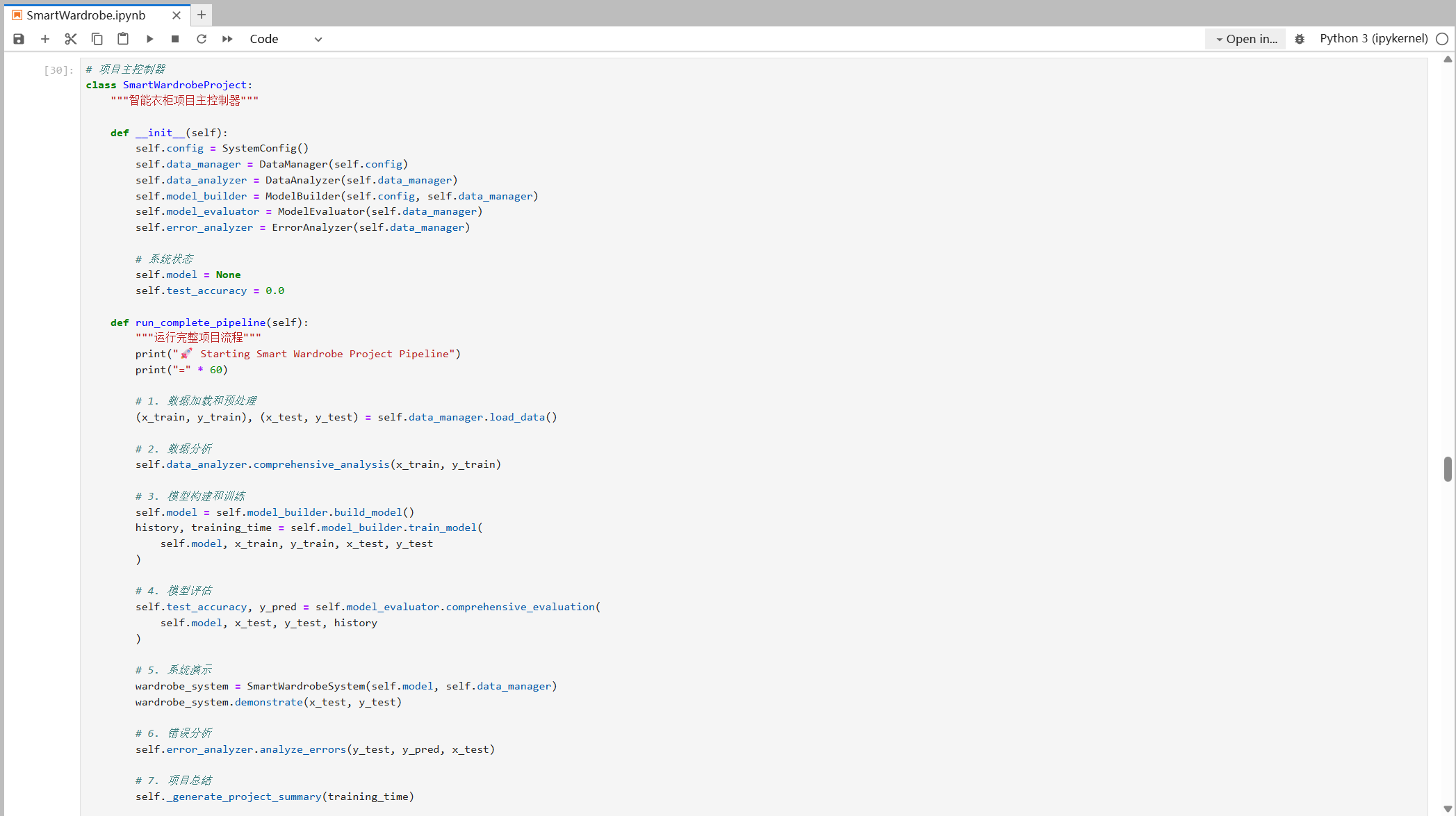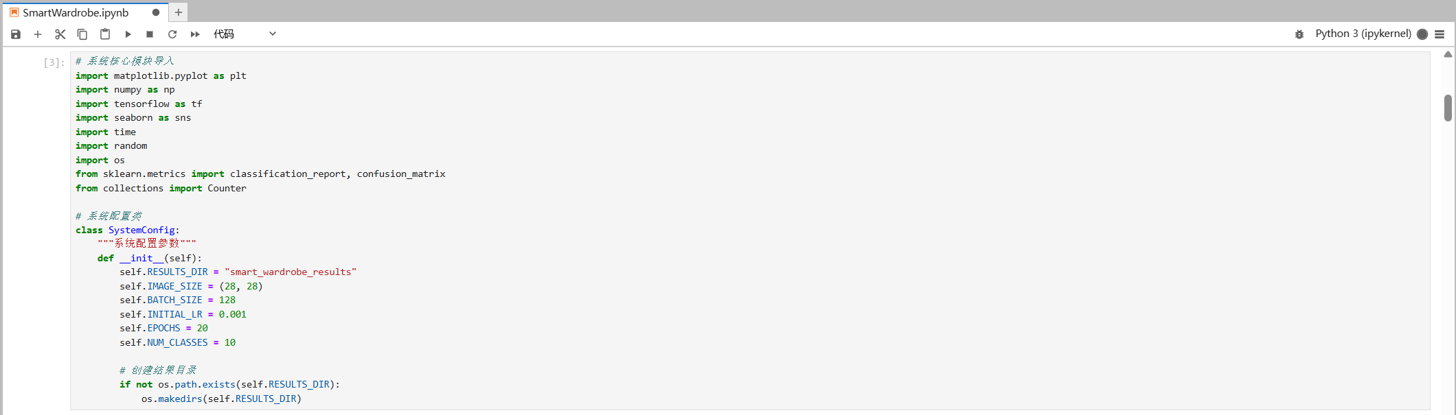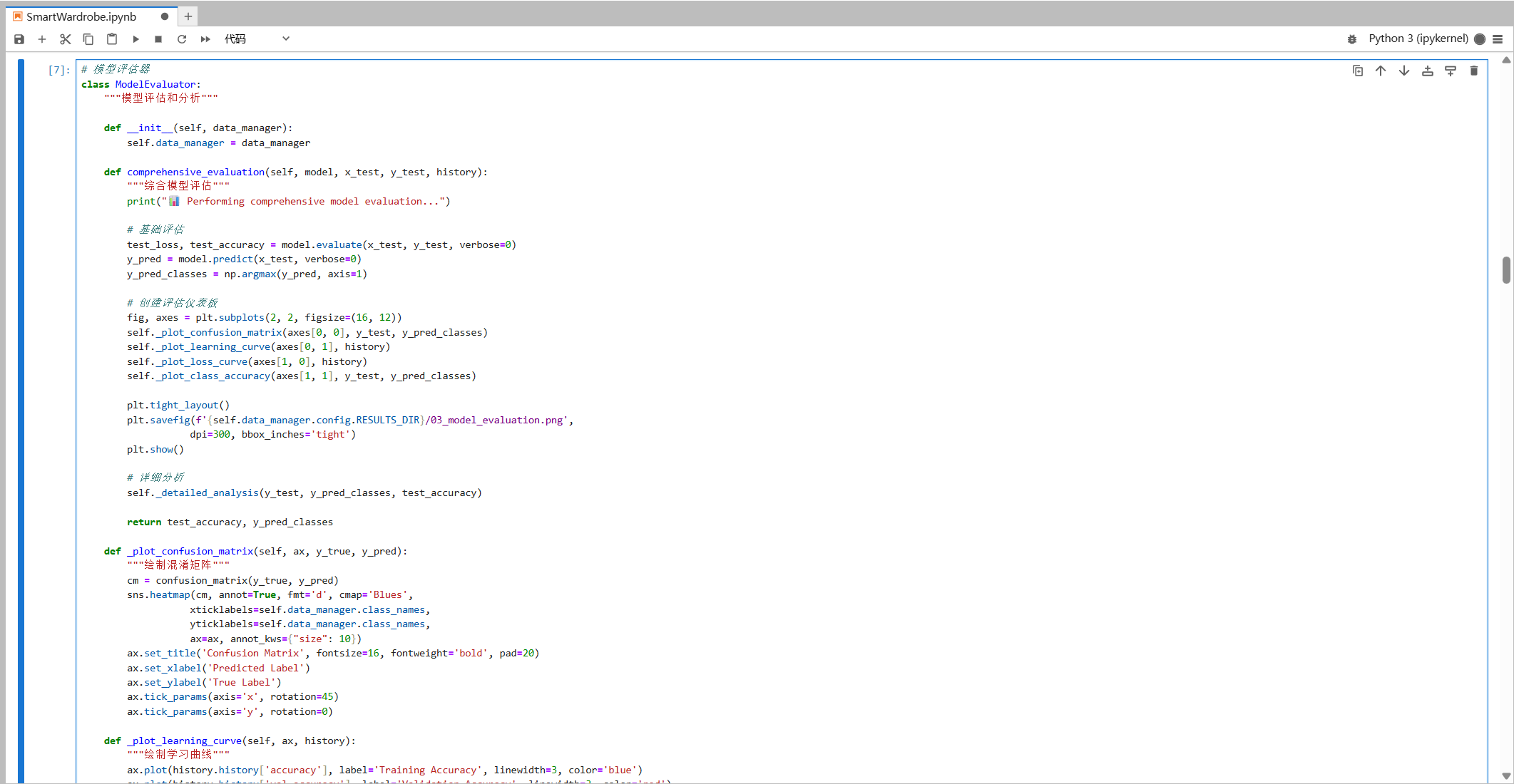 - 执行项目代码,获取智能衣柜服装分类系统运行报告。