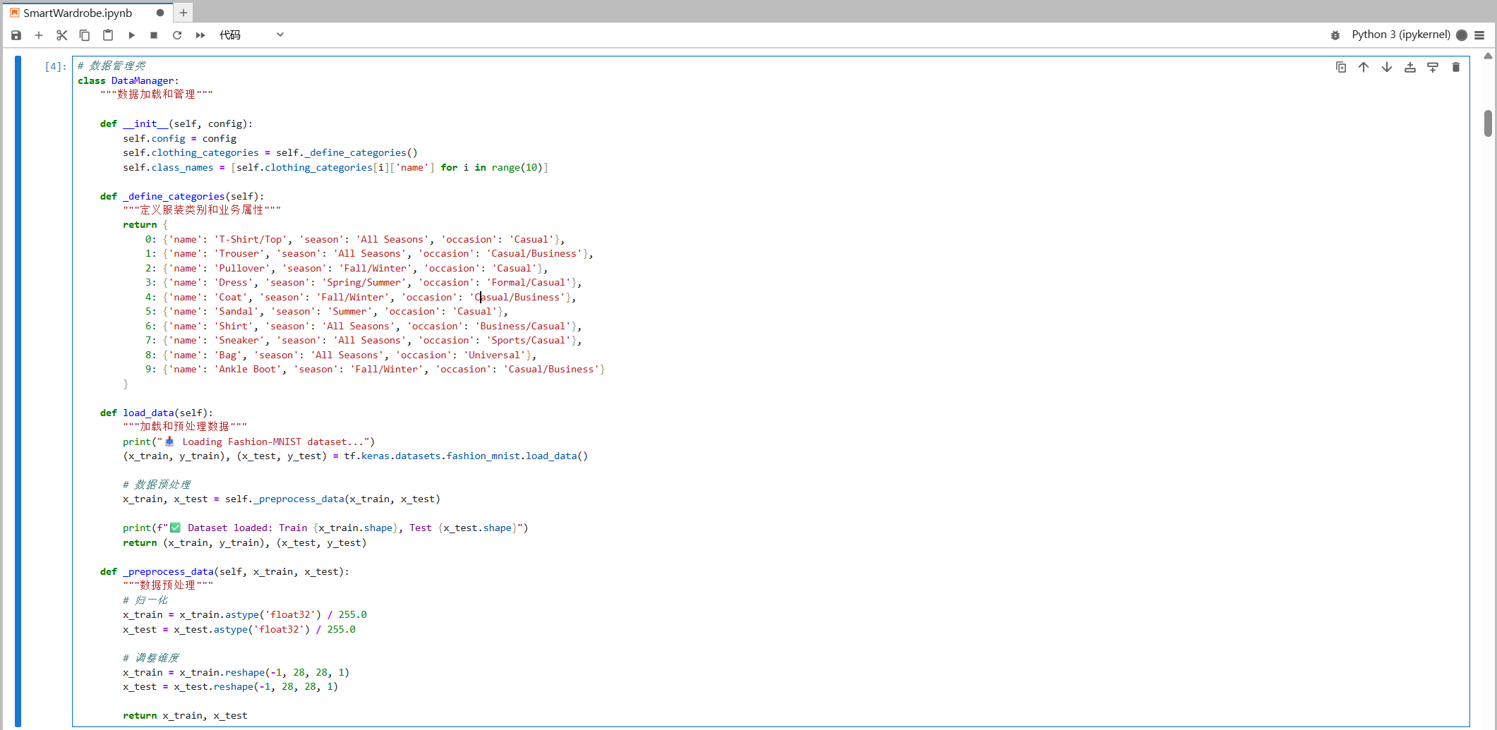 本案例基于开发者空间 - AI Notebook,使用Fashion-MNIST数据集,构建了一个智能衣柜服装分类系统,展示了深度学习技术在实际生活场景中的应用价值。系统采用卷积神经网络(CNN)架构,实现了对10类服装物品的精准识别,准确率达到93.75%。
