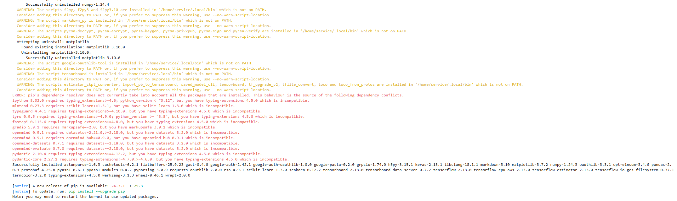 注:若出现如下报错,是版本冲突导致的,不影响项目实际运行,再次执行安装命令即可。