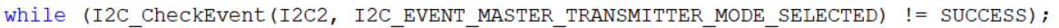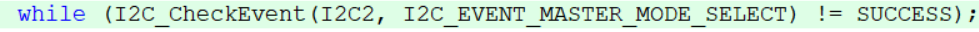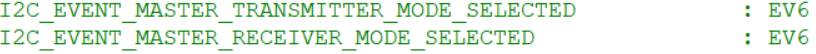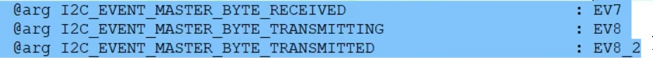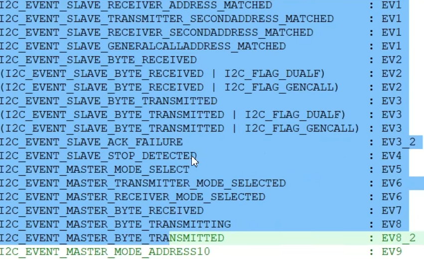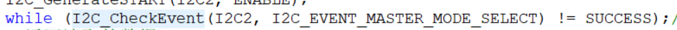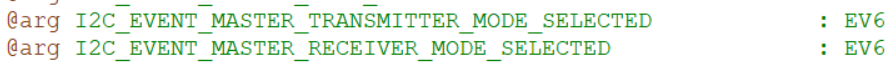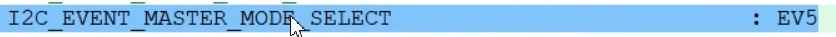 选择EV5参数,库函数还给EV5事件起来一个新名字,叫主机模式选择,因为STM32默认为从机,发送起始条件后变为主机,所以EV5事件也可以叫做,主机模式已选择的事件。