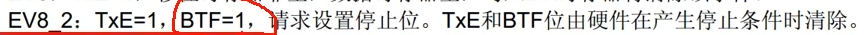 就是BTF标志位为1。也就是移位完成了并且没有新的数据可以发送的时候。置BTF,也就是EV8_2事件。
