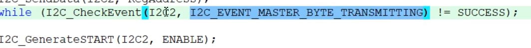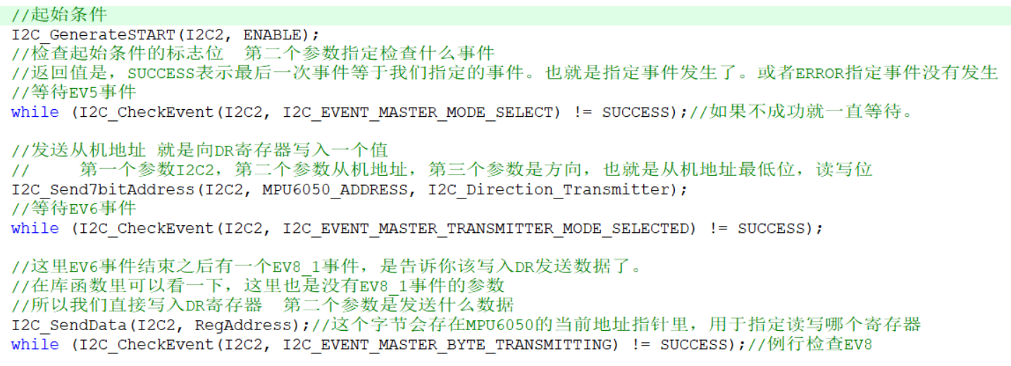 如果等到了EV8事件可以发送下一个数据,发送第三个字节 就是指定要写入的寄存器地址下的数据了。