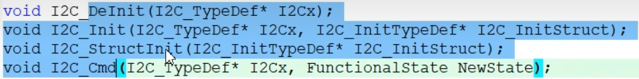 三个代码很熟悉了,恢复缺省状态就是复位I2C,初始化I2C,给I2C结构体初始化参数,然后是启动I2C使能,这些我们都很熟悉。