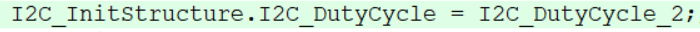 时钟占空比,这个时钟占空比,只有在时钟频率大于100KHz时候,也就是进入到快速模式下才有用。在小于100kHz的标准时钟下,占空比是固定的1:1,也就是为50%。