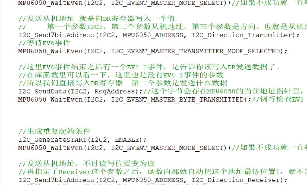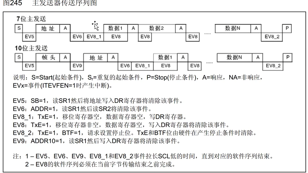 这里EV6事件结束之后有一个EV8_1事件,是告诉你该写入DR发送数据了。我们并不需要等待这个EV8_1事件。