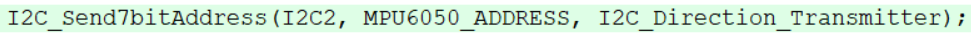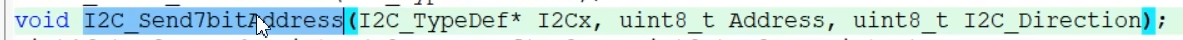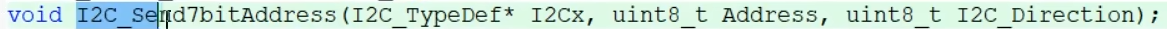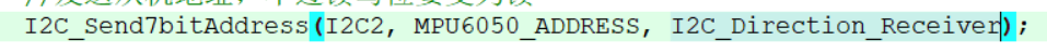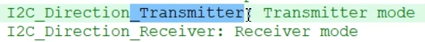 第一个参数I2C2,第二个参数从机地址,我们直接复制宏定义的从机地址。第三个参数是方向,也就是从机地址最低位,读写位