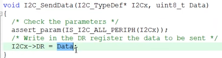 在库函数里可以看一下,这里也是没有EV8_1事件的参数,所以这时我们直接写入DR寄存器。