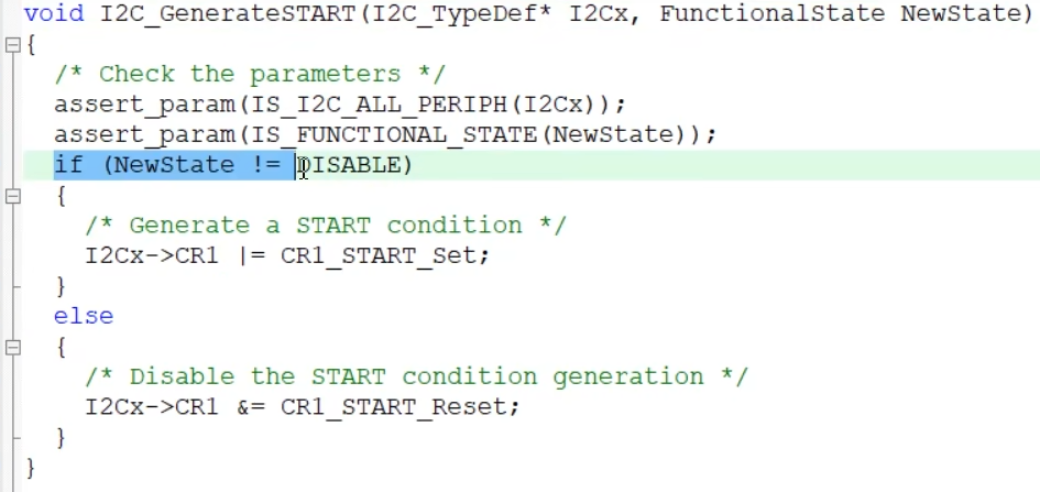 可以看一下函数定义,如果新状态不等于disable,就把CR1寄存器的值置1,否则清零。