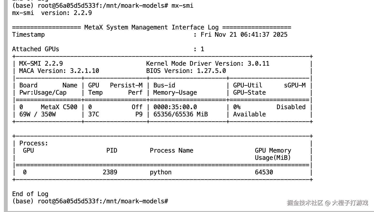 在运行的过程中,可以使用mx-smi命令查看显存的占用情况