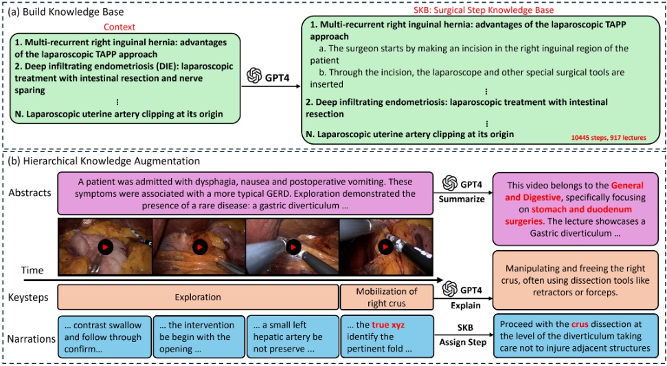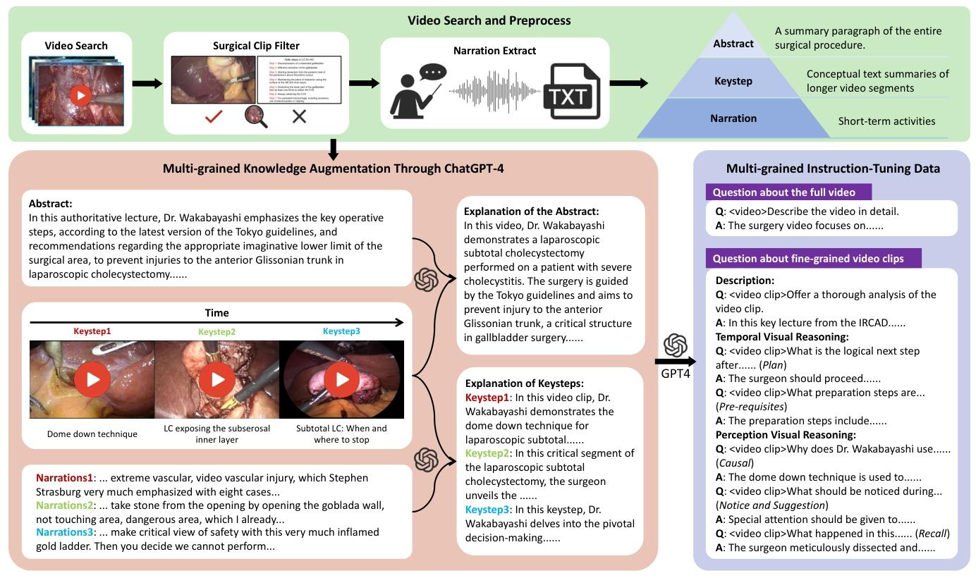 想解决的问题是外科领域文本质量低、专业知识缺失的痛点,而不是练一个手术视频理解模型