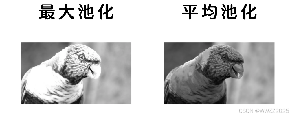有最大池化、平均池化,最大池化最常用、保留了区域内最强特征;平均池化会使图像更加柔和。