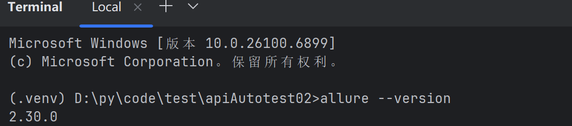 若出现cmd中执行allure--version可以打印版本,但是pycharm控制台执行命令提