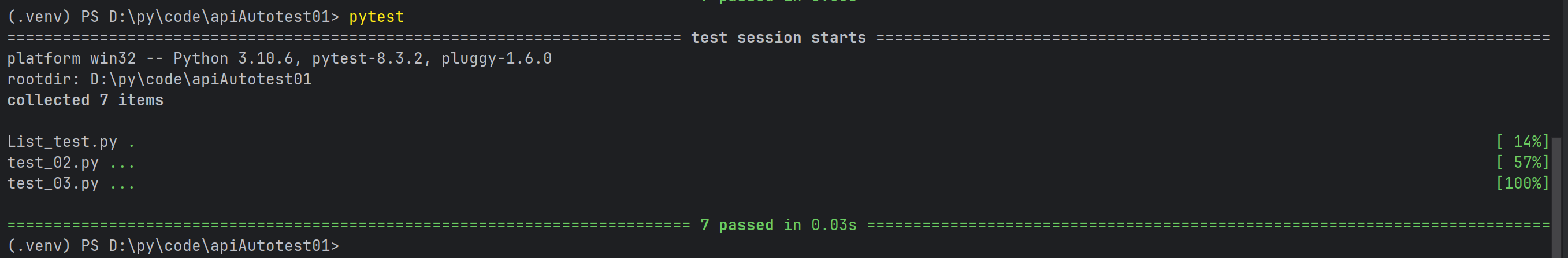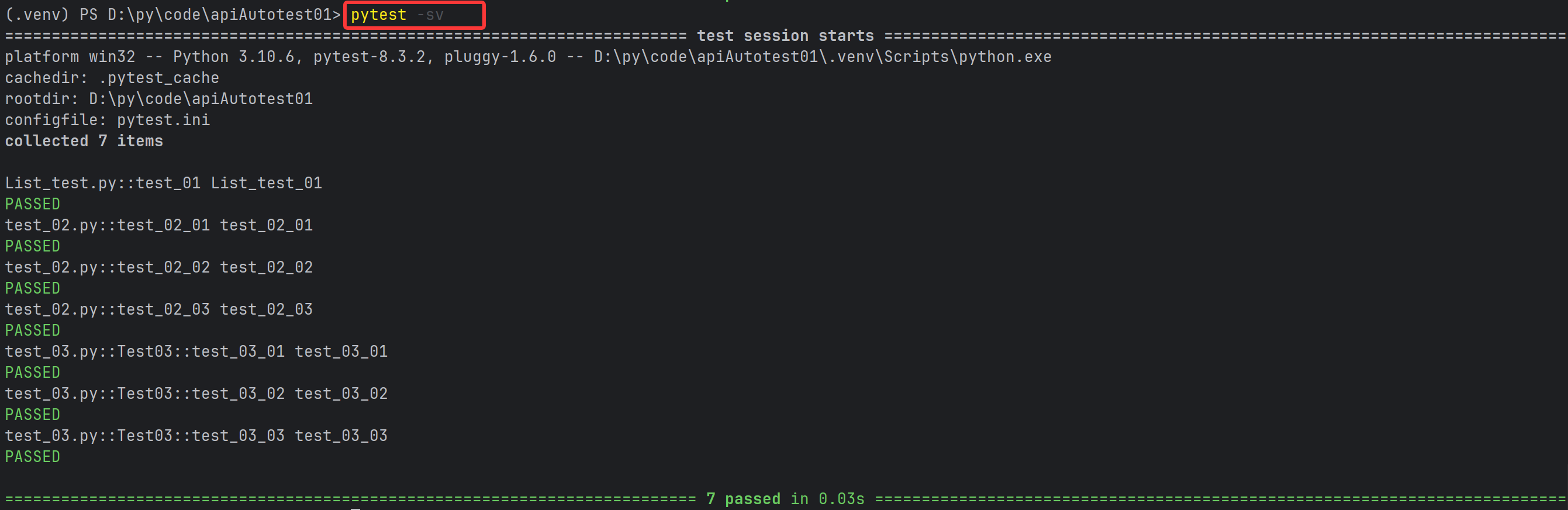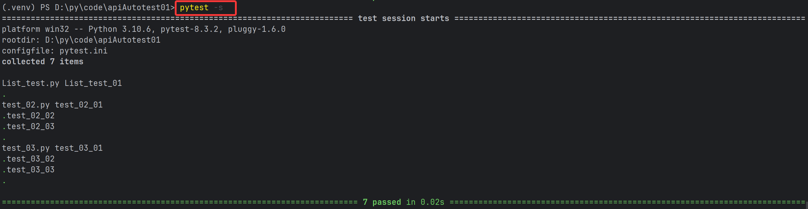 | pytest | 在当前目录及其子目录中搜索并运行测试。 | |