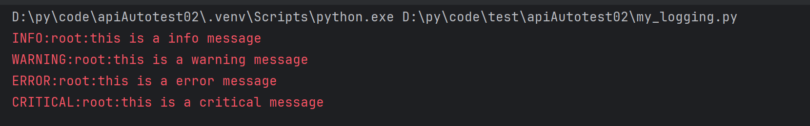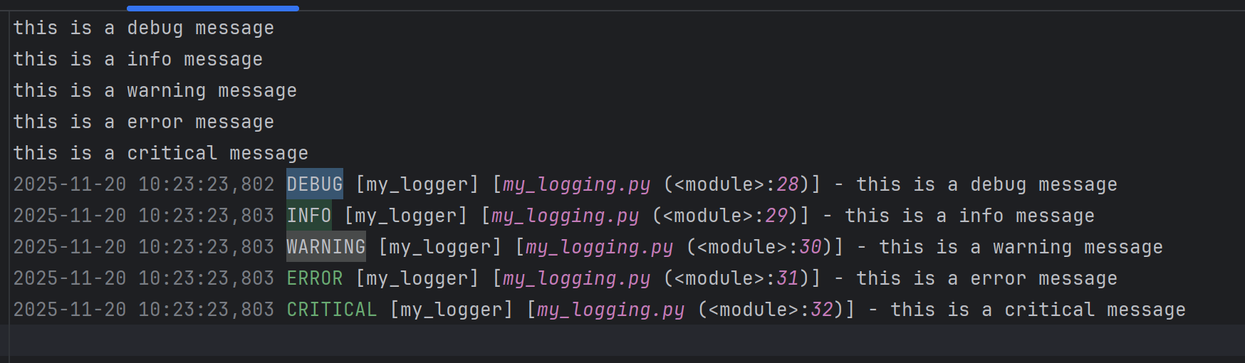 - 日志级别金字塔:DEBUG<INFO<WARNING<ERROR<CRITICAL