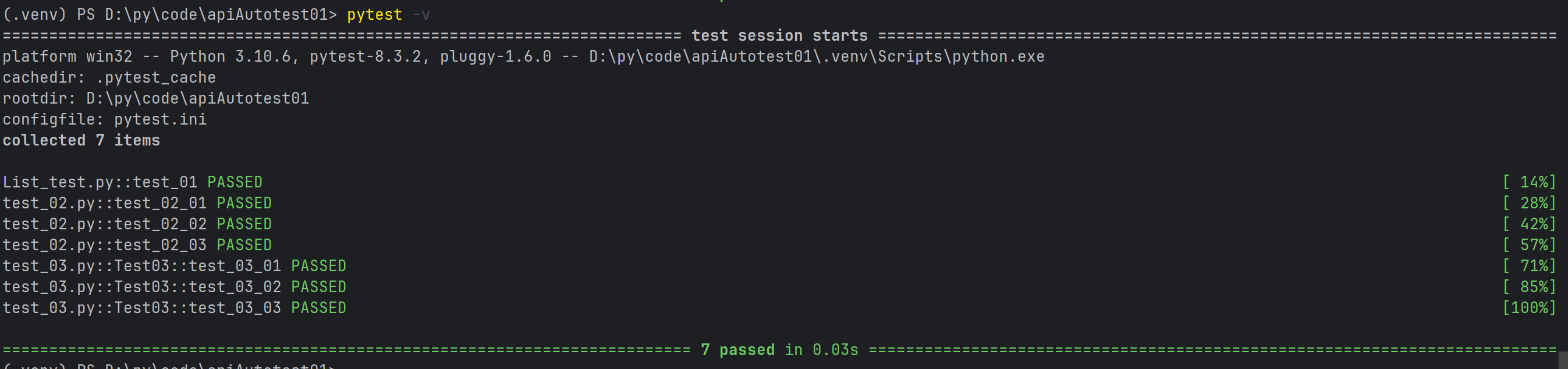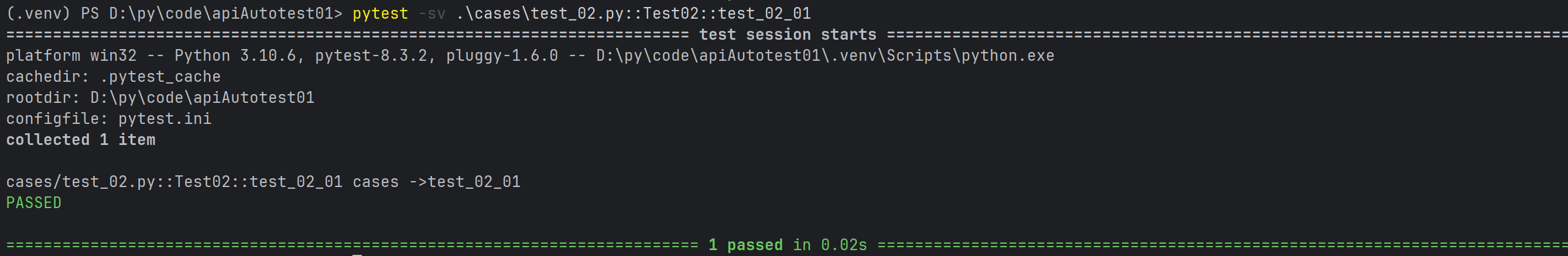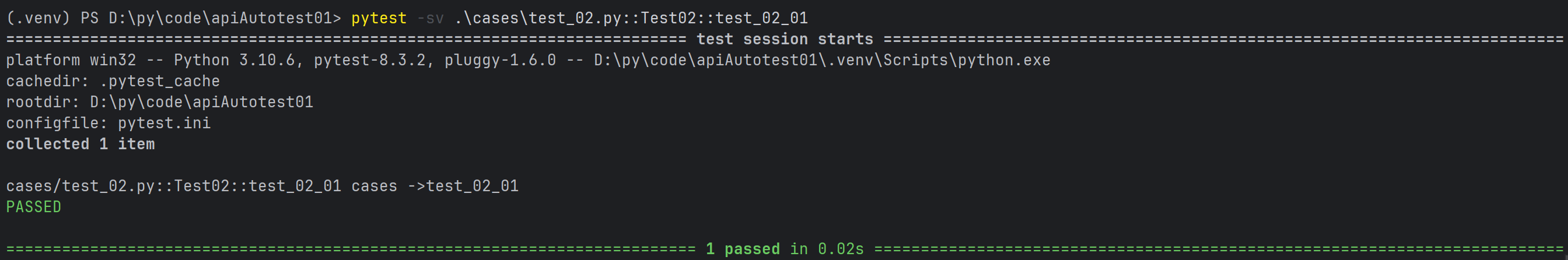 当满足以上要求后,可通过命令行参数pytest直接运行符合条件的用例