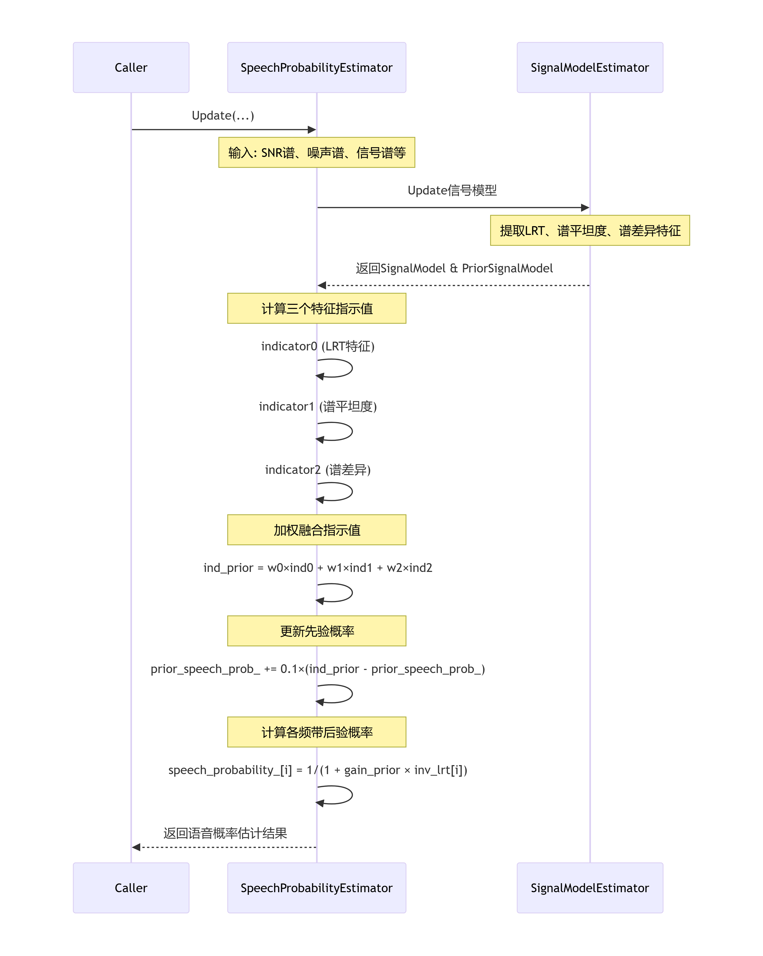 这种设计确保了算法在各种声学环境下都能稳定工作,为WebRTC的噪声抑制模块提供了可靠的语音/噪声判别基础。