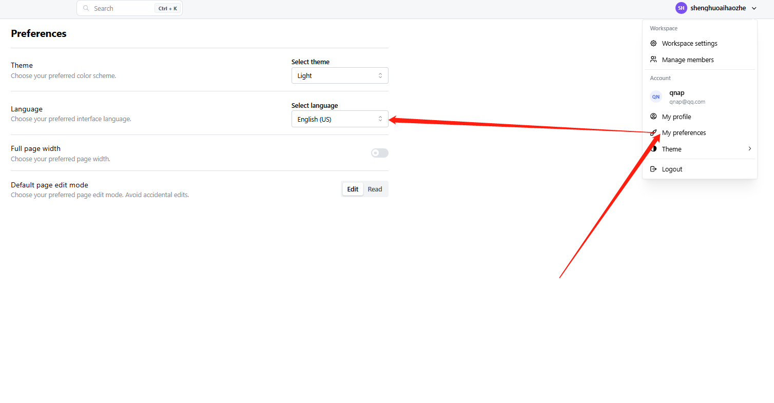 进入页面,需要先进行语言设置,点击右上角【My preferences】