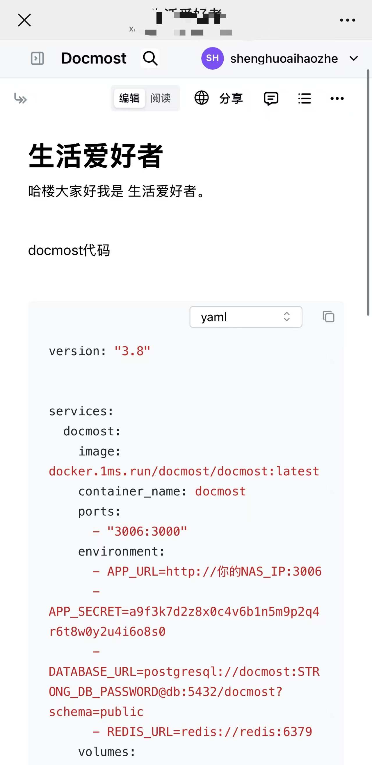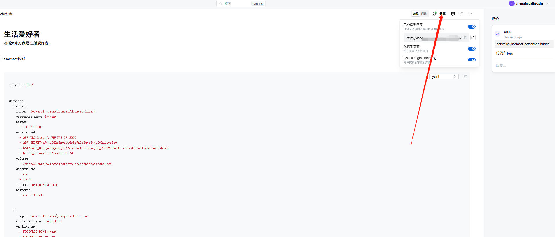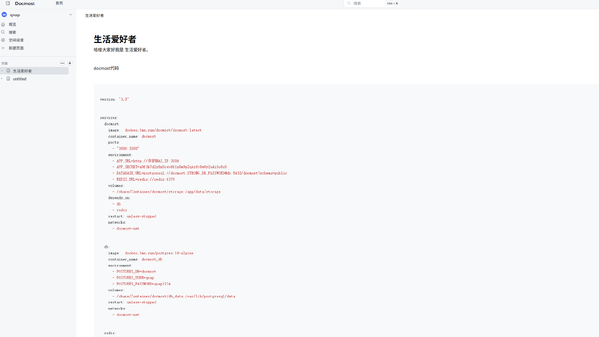 在浏览器中输入NAS的IP+端口号即可访问Docmost。