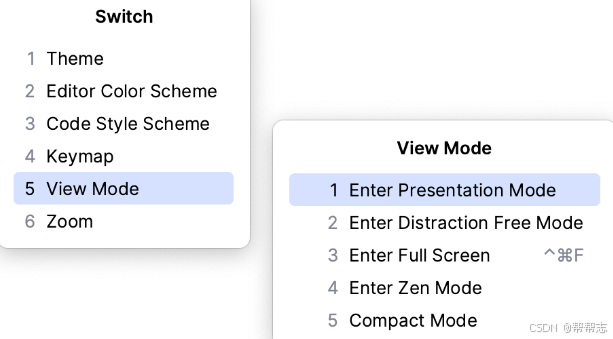 PyCharm允许你在不同使用风格和场景下切换多种观看模式。