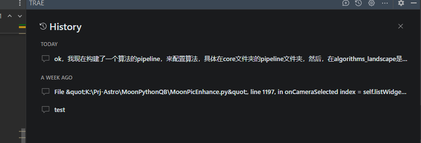 如果出现,对文件的读取,尤其是正确的文件读取地址,那么就是设定好了,TRAE会自动打开上次用的history,