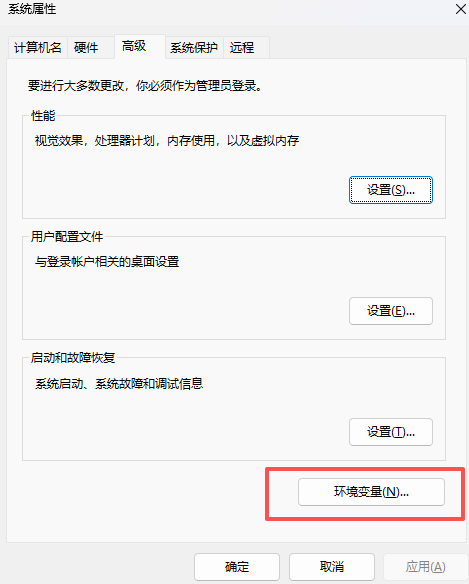 下载安装好之后,在设置里搜索"环境变量",选择"编辑系统的环境变量",在弹出的窗口里选择红框