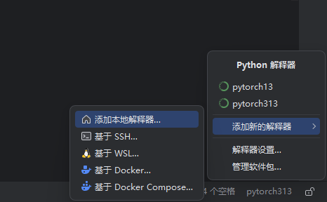 点击红框,可以看到有如下选项,点击添加本地解释器