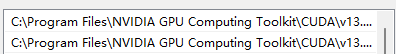 看看有没有如下两个系统变量(以你安装的版本为准,不一定是13.0)。