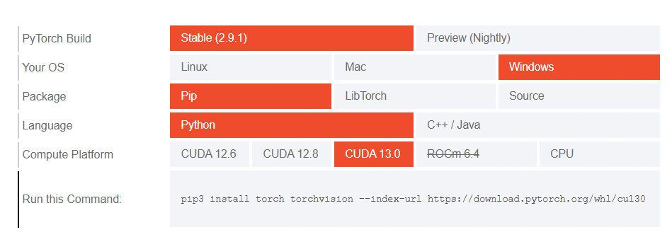 激活后,便可以安装Pytorch了。可以在官网上找到合适的版本下载: