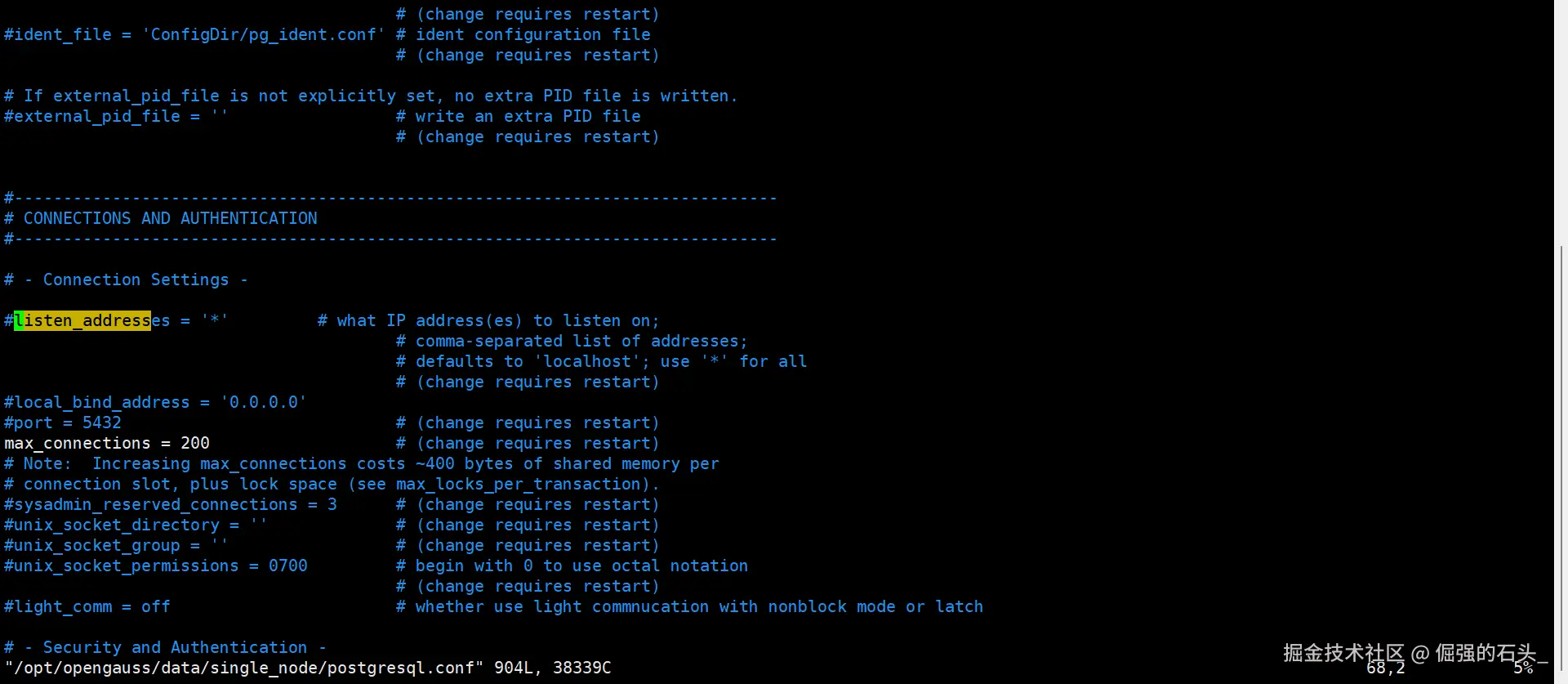 vi /opt/opengauss/data/single_node/postgresql.conf