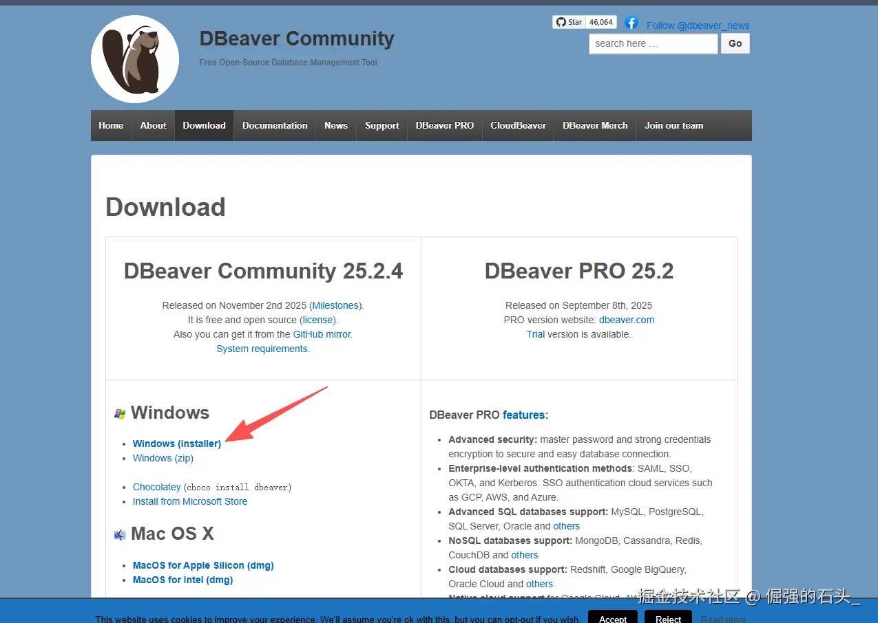 访问DBeaver官方下载页面下载适配您的操作系统的安装包