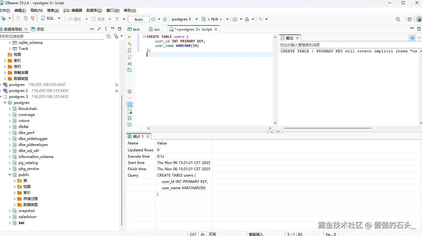 数据库的事务特性(ACID)是保证数据一致性的基石。我们可以通过DBeaver来直观地验证openGauss的事务处理能力。