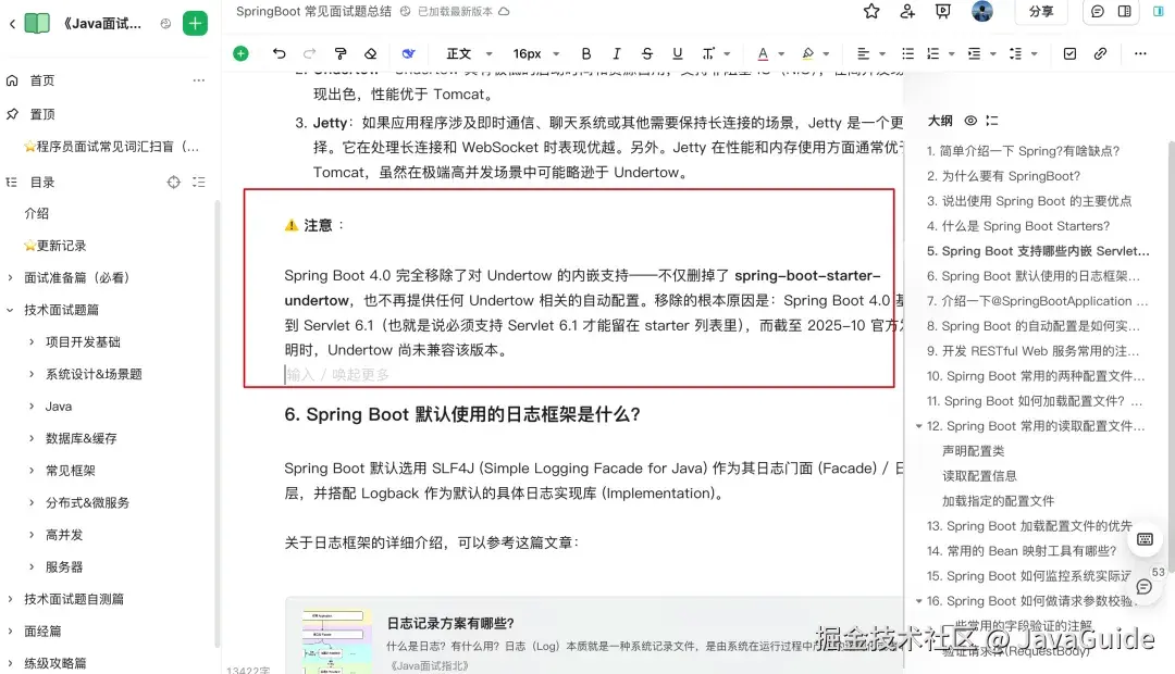 这些新特性很多我都已经同步更新到了《Java 面试指北》(后端面试指南)中,保证内容与时俱进!