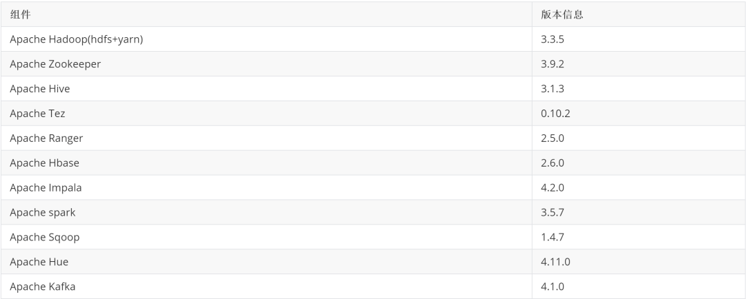 下面各个组件版本是经过大量编译、部署并验证基础场景SQL 操作没有问题后才最终确认其兼容版本,除了sqoop抽取关系型数据库到hbase有点问题,其他操作均未发现问题.