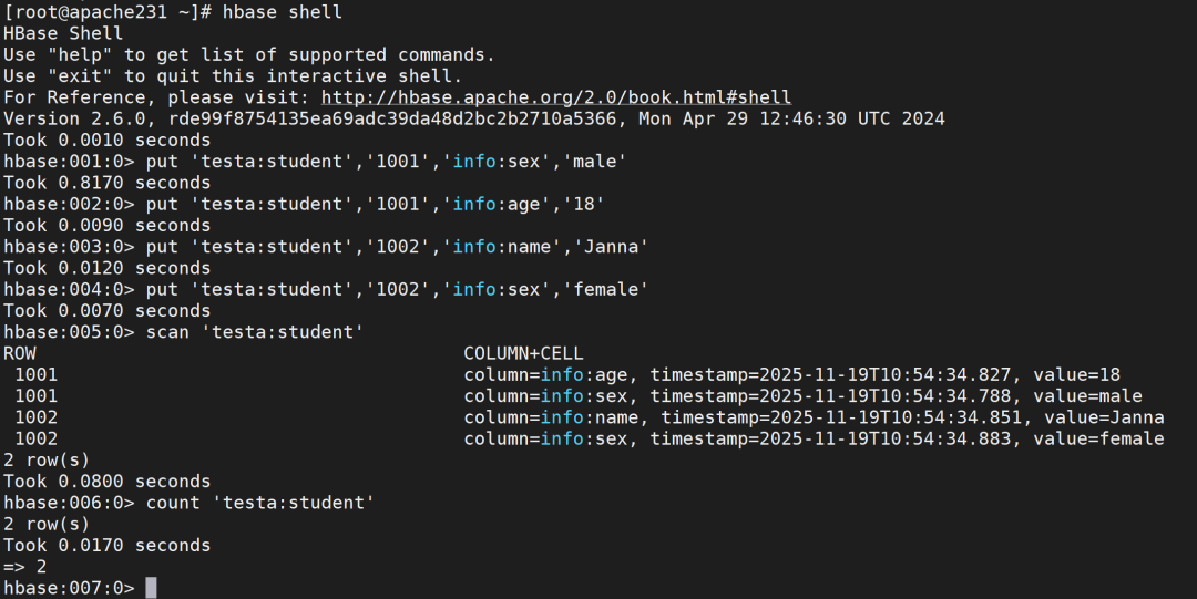 分发至其他节点: ansible hadoopsrcclustero -m copy -a "src=/opt/softs/apache-zookeeper-3.9.2-bin.tar.gz dest=/opt/softs/"解压到指定路径: ansible hadoopsrccluster -m shell -a "tar -xf /opt/softs/apache-zookeeper-3.9.2-bin.tar.gz -C /opt/apache_v00/"修改名称: ansible hadoopsrccluster -m shell -a "mv /opt/apache_v00/apache-zookeeper-3.9.2-bin /opt/apache_v00/apache-zookeeper-3.9.2"