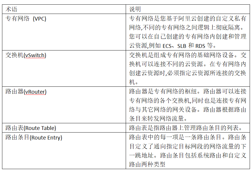 路由器:连接VPC内部的不同交换机、其他VPC、其他网络类型· 专有网络本身不收取任何费用,但如果您在专有网络上创建了相关资源,需要为您使用的这些资源付费。