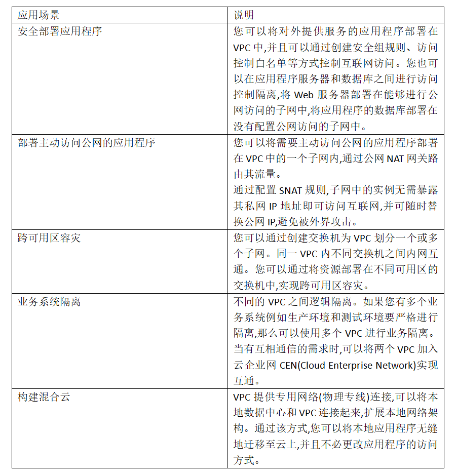 专有网络VPC(Virtual Private Cloud)是完全隔离的虚拟网络环境,配置灵活,可满足不同的应用场景。