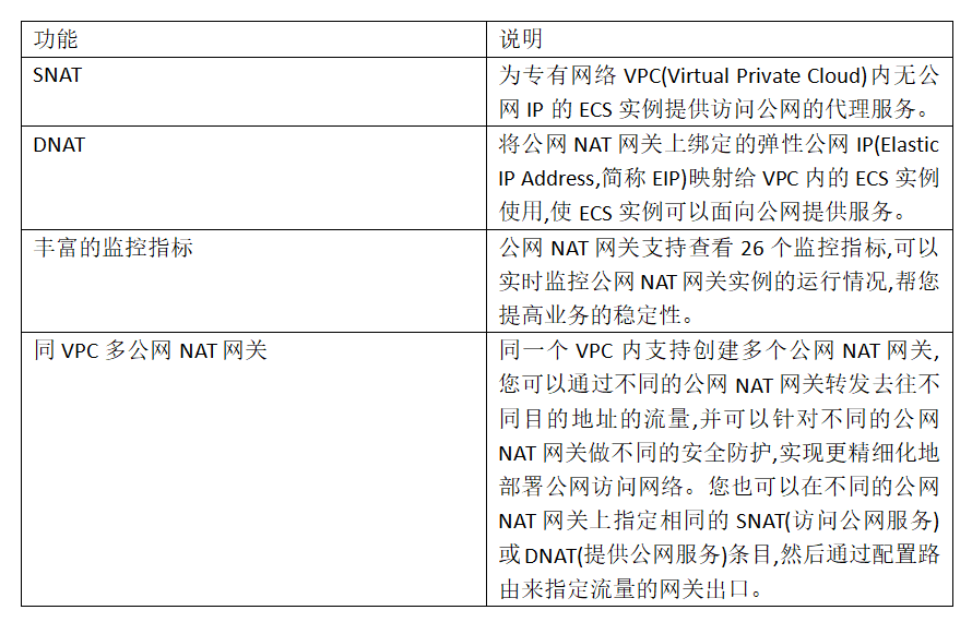 √ 为VPC中分配了IPv4公网地址的网络资源(例如弹性网卡、ECS等),提供网络地址转换功能。
