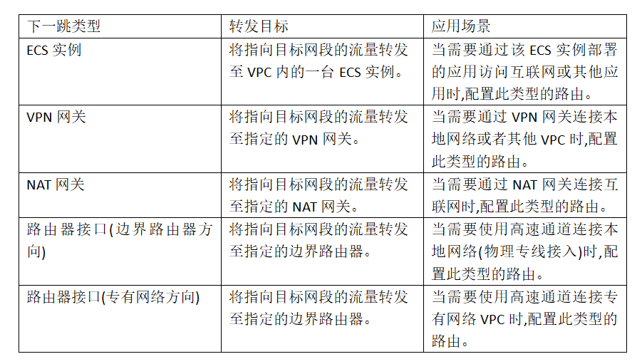 网关路由表的下一跳类型仅支持Local、弹性网卡或ECS实例。