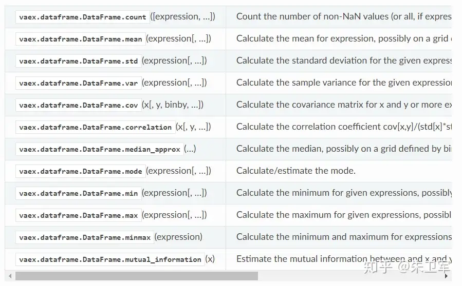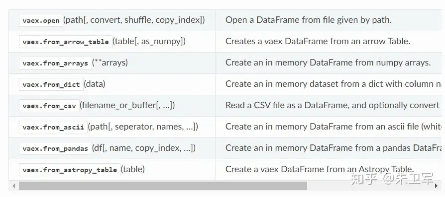 - vaex采取内存映射、惰性计算,不占用内存,适合处理大数据;