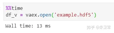 所以说不管加载多大的数据,10GB、100GB...对vaex来说都是瞬间搞定。美中不足的是,vaex的懒加载只支持HDF5, Apache Arrow,Parquet, FITS等文件,不支持csv等文本文件,因为文本文件没办法进行内存映射。