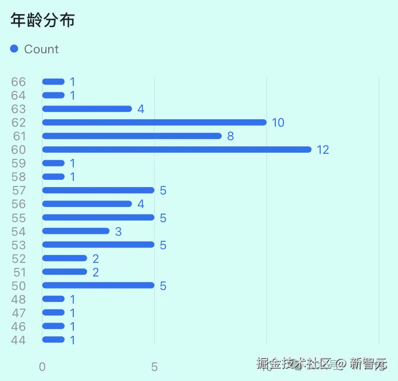 年龄分布上,最大的 66 岁,最小的 44 岁。