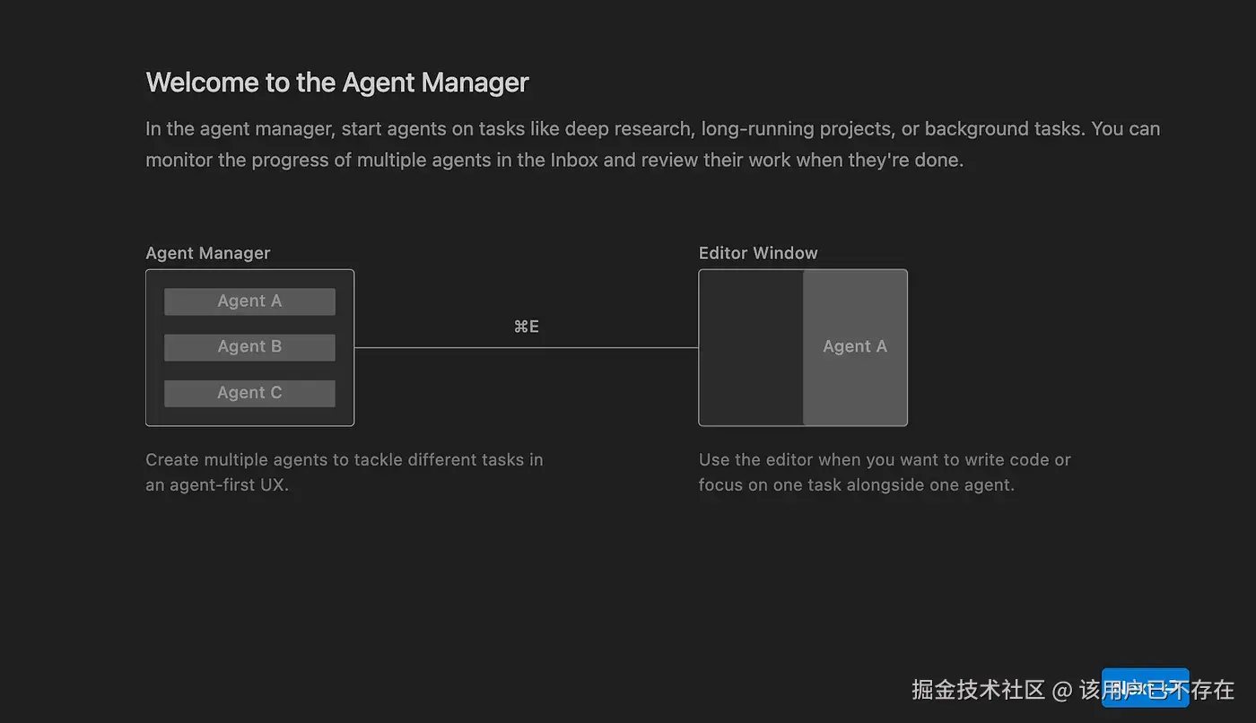 这是 Antigravity 最显著的特点。它引入了一个 Manager View(经理视图)。用户可以在这里同时从宏观层面指挥多个智能体。