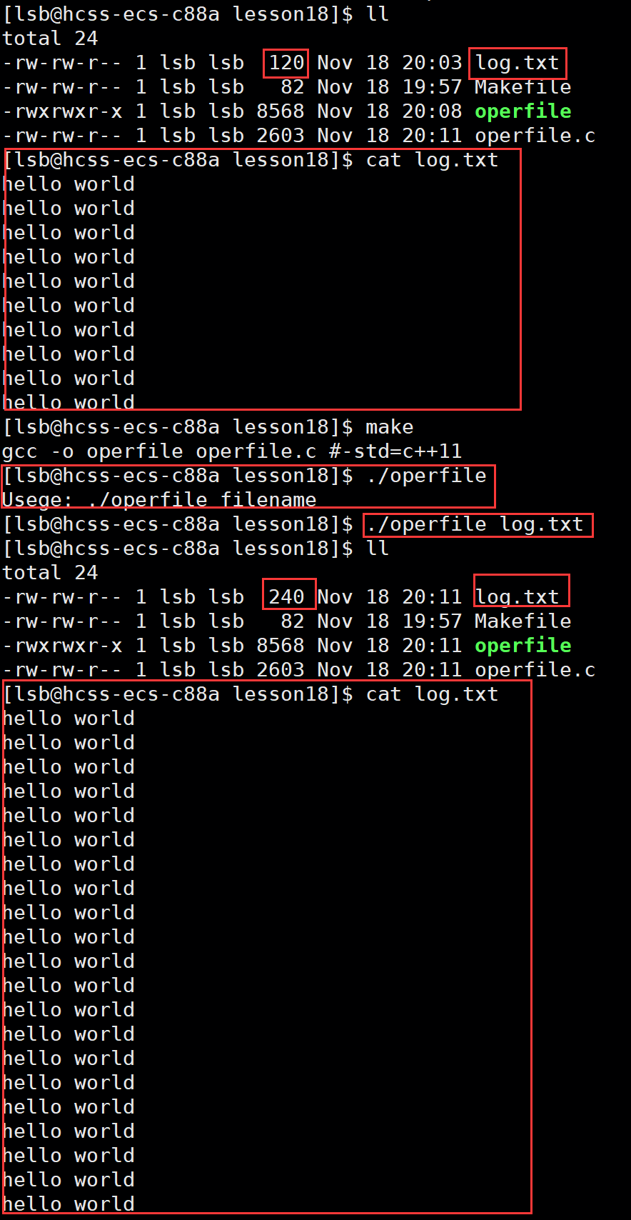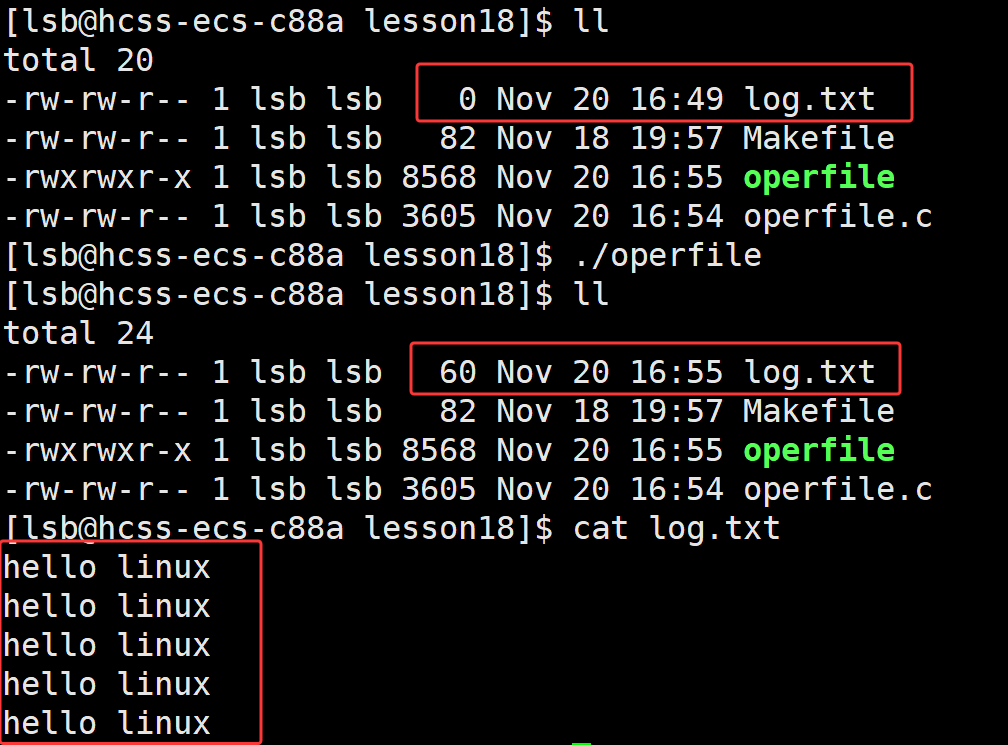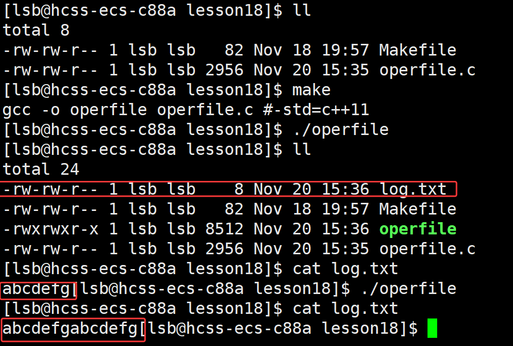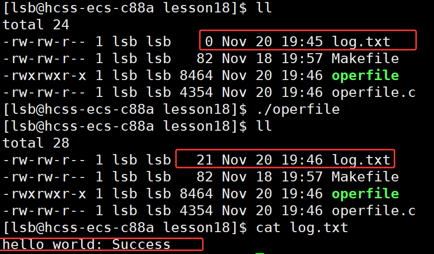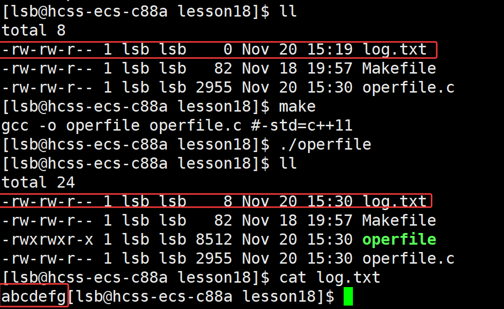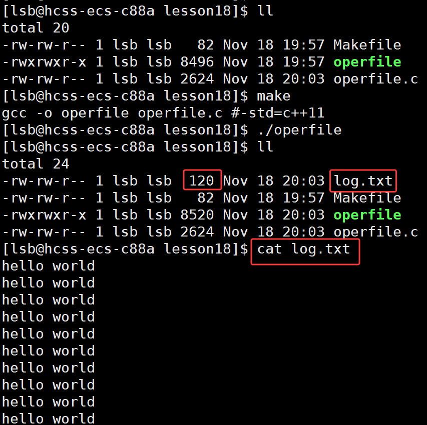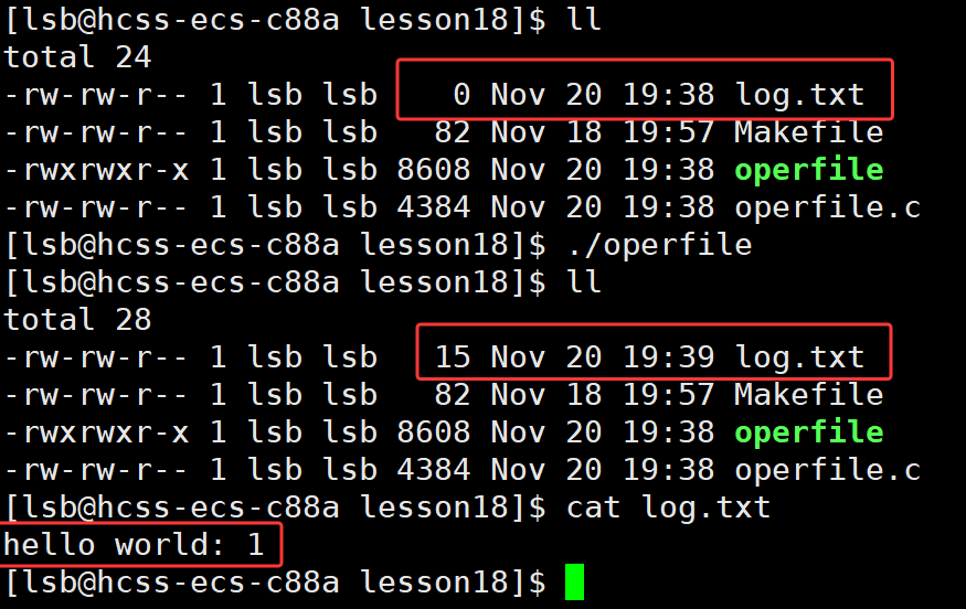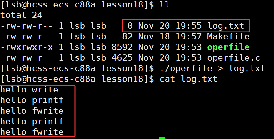 但如果对进程实现输出重定向呢?./operator > log.txt,我们发现结果变成了: