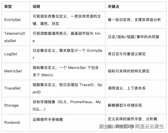 ServiceLogs、ServiceMetrics、Traces等 TelemetryDataSet,描述自身数据与调用产生的数据。 - 建立 TelemetryDataSet 与 EntitySet 的 DataLink。