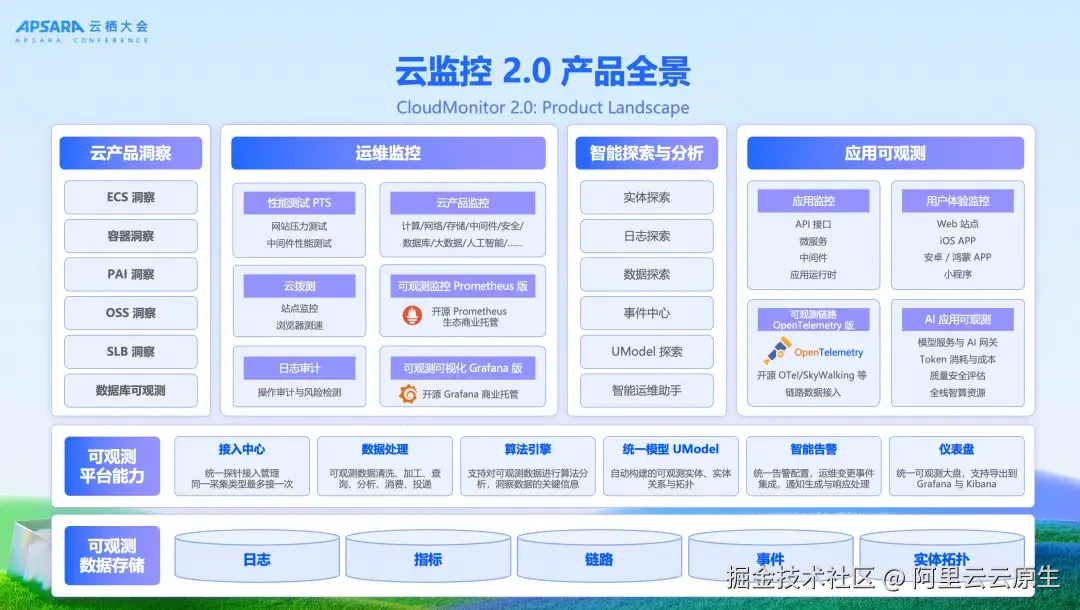 关于可观测 2.0 相关的产品和设计理念,可参考:《云栖实录:重构可观测 - 打造大模型驱动的云监控 2.0 与 AIOps 新范式》。