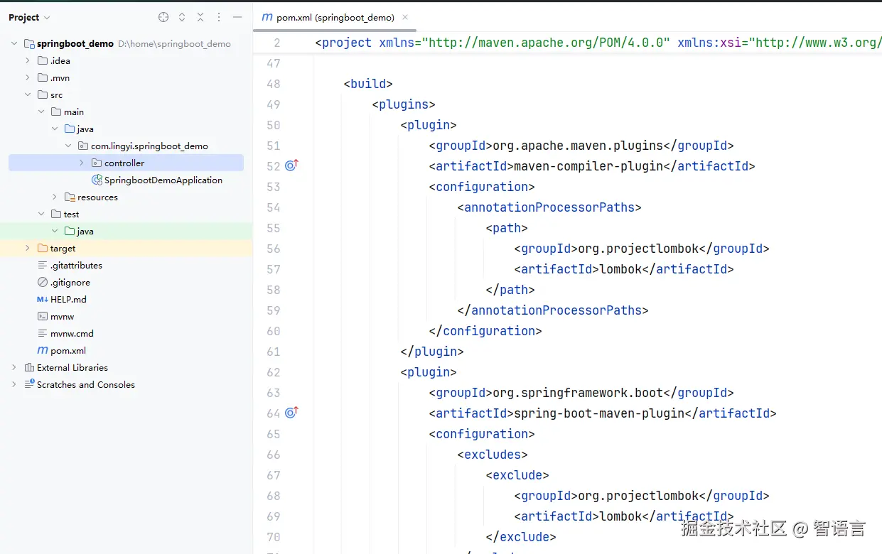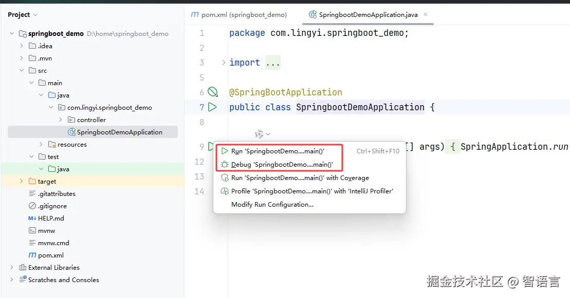在com.lingyi.springboot_demo包下创建controller包,再创建如下java类