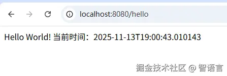 return "Hello World! 当前时间:" + LocalDateTime.now();