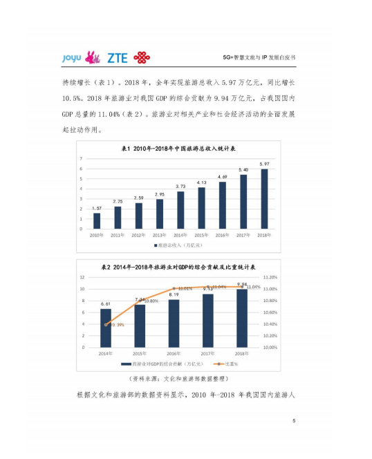 《白皮书》在引言部分明确指出,旅游和信息技术的深度融合已成为不可阻挡的时代潮流。而2019年作为5G商用元年,以5G为代表的新一代信息技术(如超高清、AR/VR、人工智能)正成为促进文旅产业深度融合发展的重要动力。